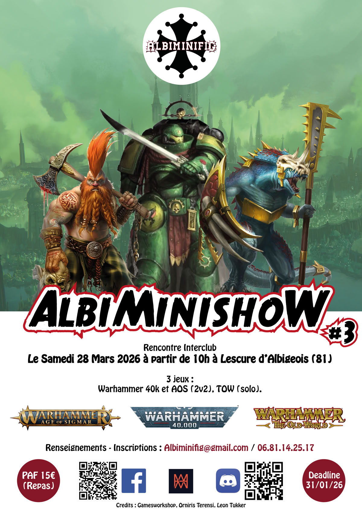 Que vous soyez compétitif, narratif, collectionneur, peintre du dimanche ou général autoproclamé de l’Apocalypse, vous êtes les bienvenus. L’objectif est simple : jouer, rencontrer, partager et montrer qu’une communauté passionnée, même sans maillot ni crampons, peut faire vivre une salle aussi bien que n’importe quelle association sportive.