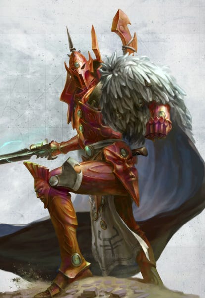 • Le Visarch, un ancien noble d’un Vaisseau-Monde non nommé, peut-être un Prince Exodite, qui devient son protecteur personnel. Son armure rouge sang et sa grande lame — l’une des Croneswords — en font un champion énigmatique et obsédé par la destinée de son peuple. Il parle peu, mais protège Yvraine avec une dévotion presque divine.